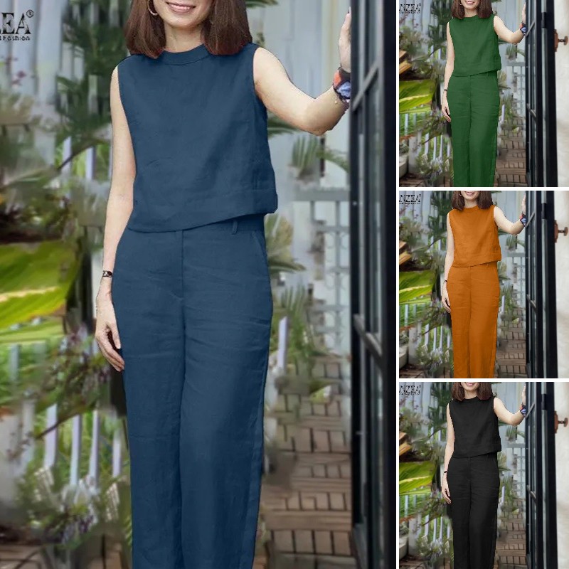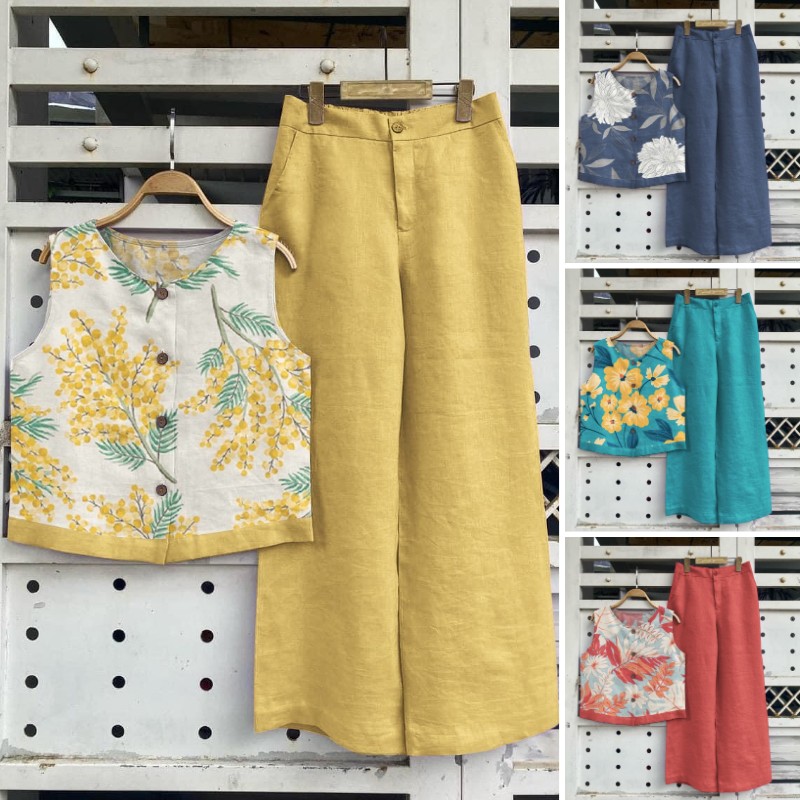 - Setelan katun dan linen tanpa lengan, celana pinggang elastis lurus, kain berkualitas tinggiRp297.000Rincian