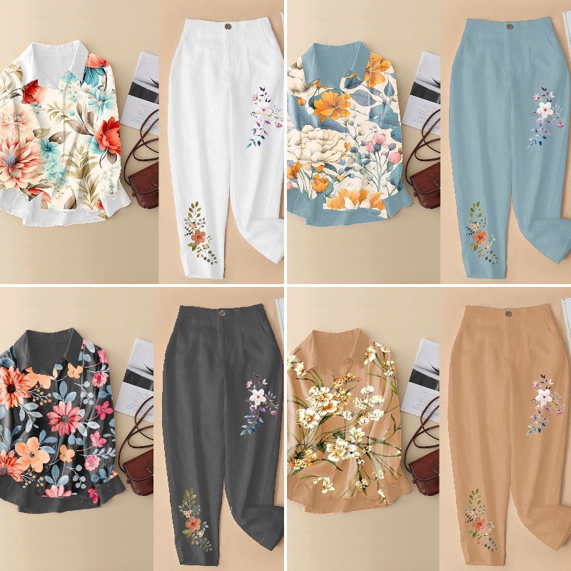 - Cotton musim panas dan linen dicetak celana atas+lebar kaki 2 potong setRp299.000Rincian