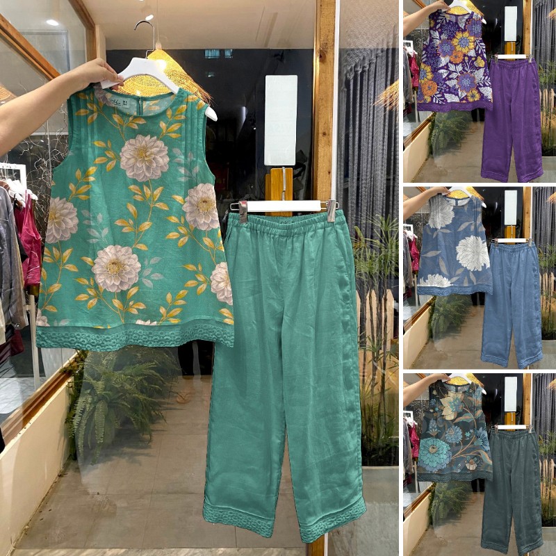 - Setelan katun dan linen tanpa lengan, celana pinggang elastis lurus, kain berkualitas tinggiRp298.000Rincian