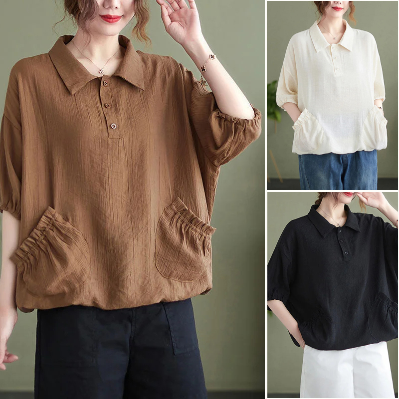 - 【beli satu gratis satu】Chic Khaki Patchwork Button Solid T Shirt Short SleeveRp299.000Rincian