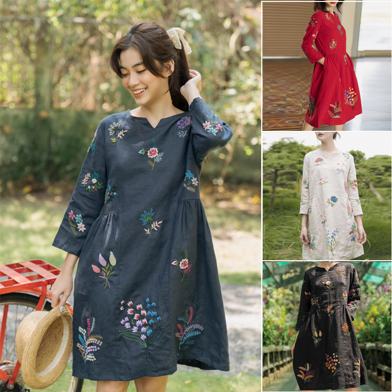 - Pakaian garis dengan pola bunga liar yang dipenuhi tangan, pakaian garis untuk wanita,Rp299.000Rincian