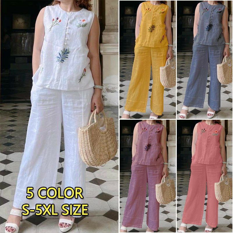 - Wanita 3/4 Tidur Cotton Tops Jalan lebar Elastik Pakaian Pakaian Trouser WaistRp299.000Rincian
