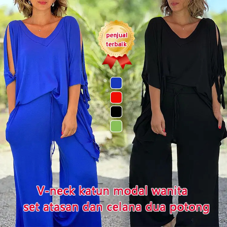 - Set Atasan dan Elana Katun Modal V-neck WanitaRp299.000Rincian