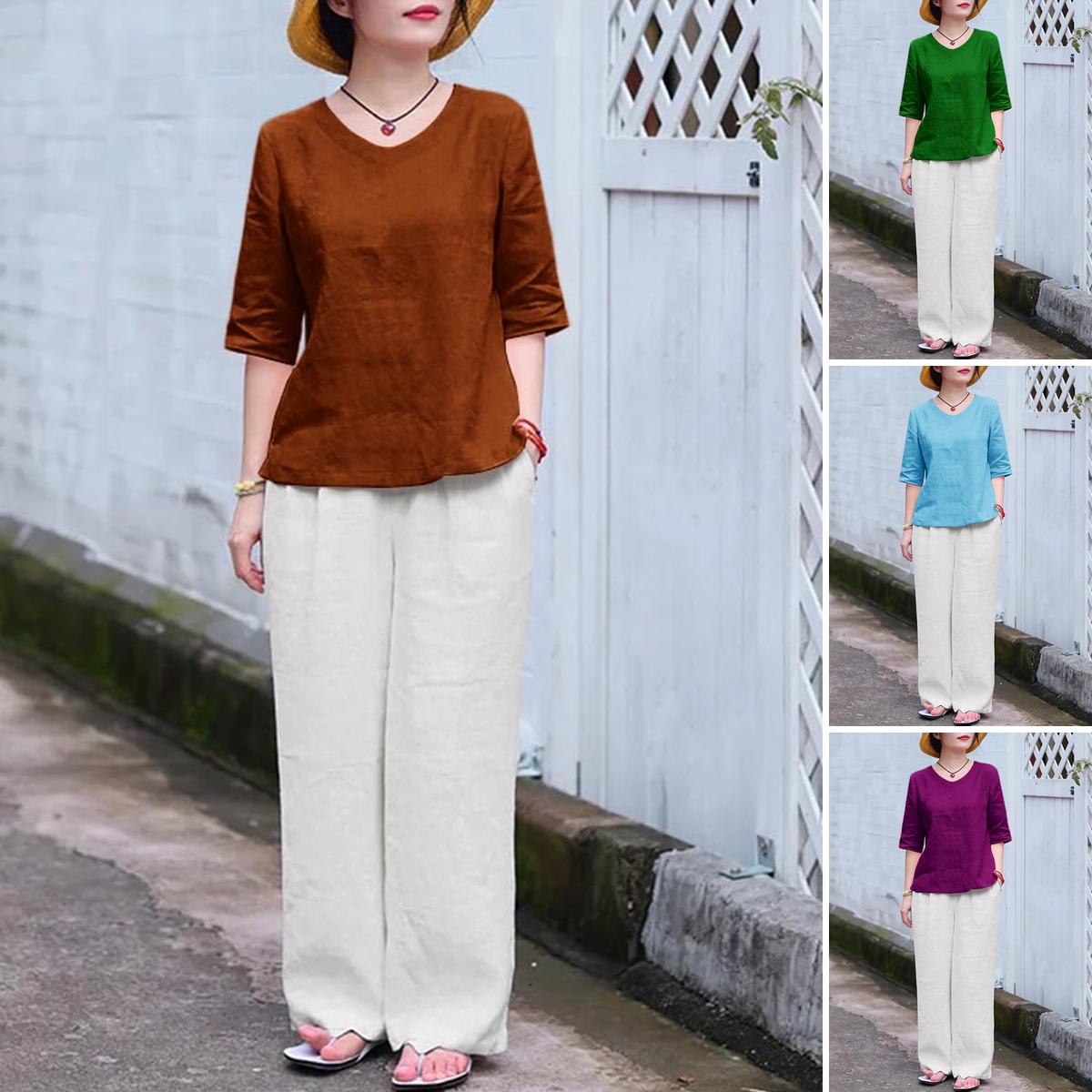 - Set 2 potong celana lebar kaki katun dan linen warna solid gaya Jepang yang eleganRp299.000Rincian