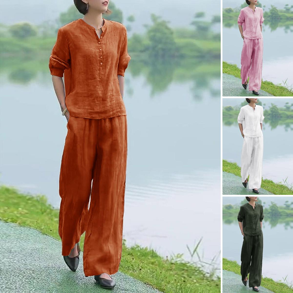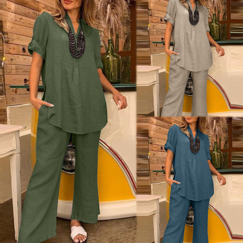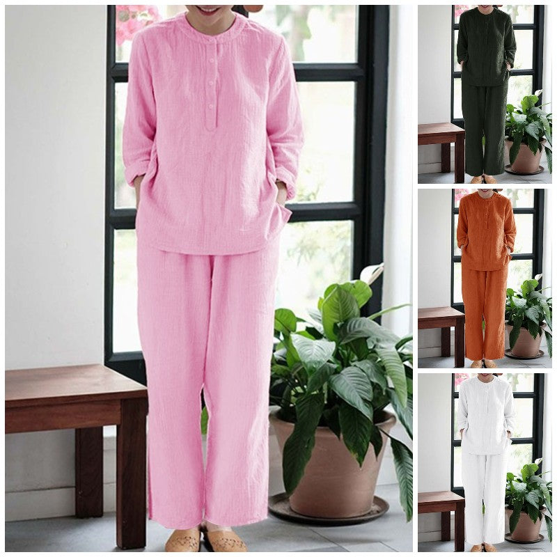- Set 2 potong celana lebar kaki katun dan linen warna solid gaya Jepang yang eleganRp339.000Rincian