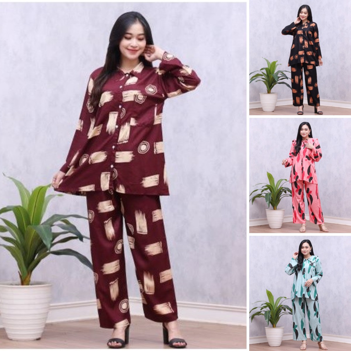 - Setelan kemeja lengan pendek kerah lebar warna solidRp299.000Rincian
