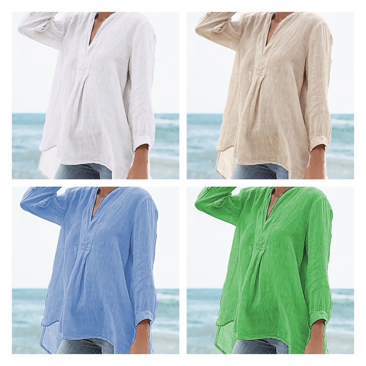 - Wanita katun linen pasir tipis warna solid lengan pendek panjang depan dan belakang 9 menitRp299.000Rincian