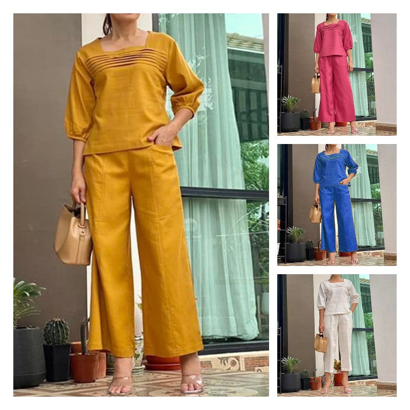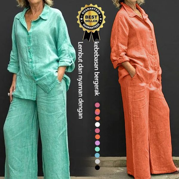 - Set 2 potong celana lebar kaki katun dan linen warna solid gaya Jepang yang eleganRp399.000Rincian