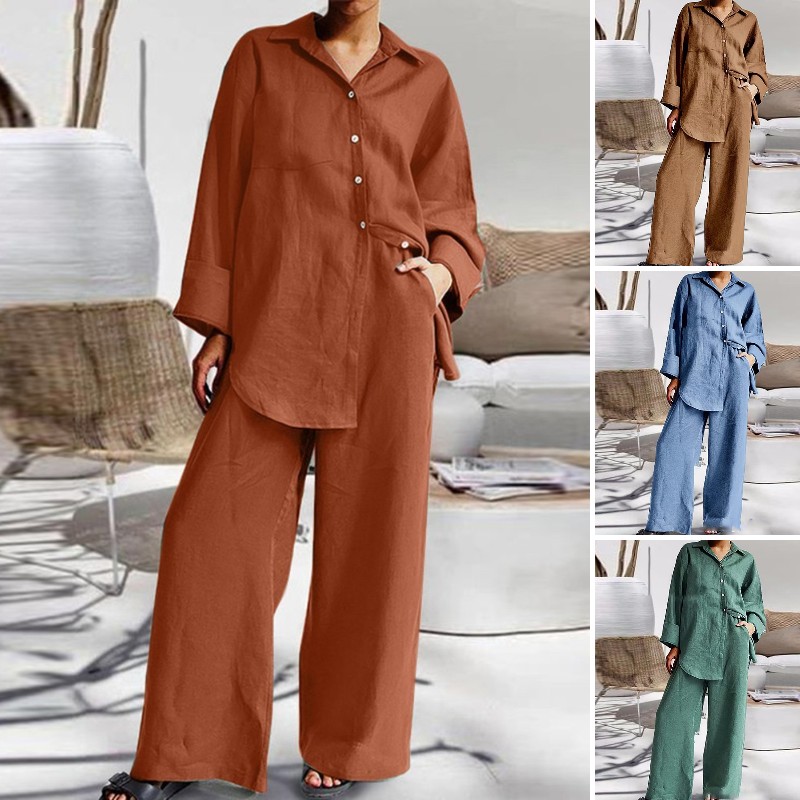 - Set 2 potong celana lebar kaki katun dan linen warna solid gaya Jepang yang eleganRp299.000Rincian