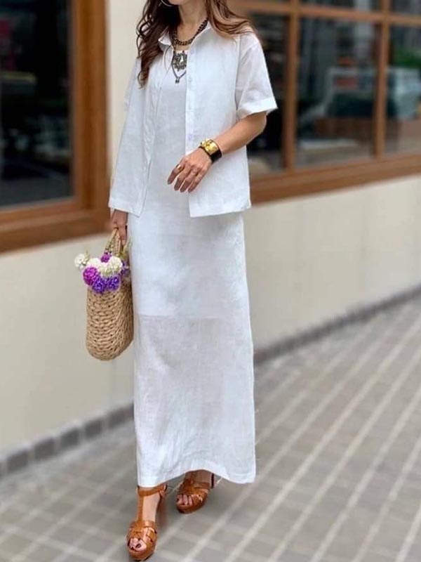 32 Menit LaluButang Front Split Hem Two-Piece Set gaun - beli satu gratis satu(2 PCS)