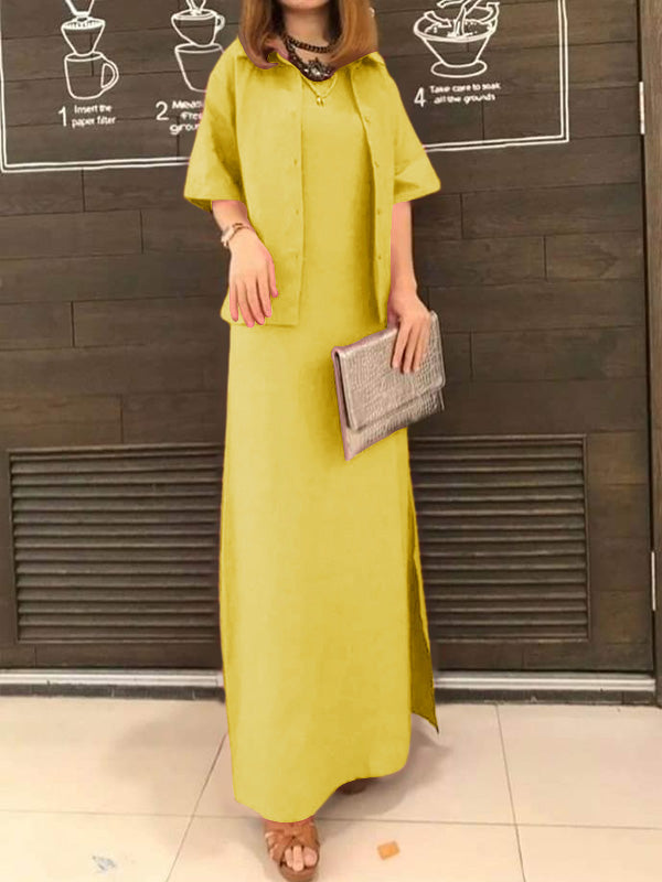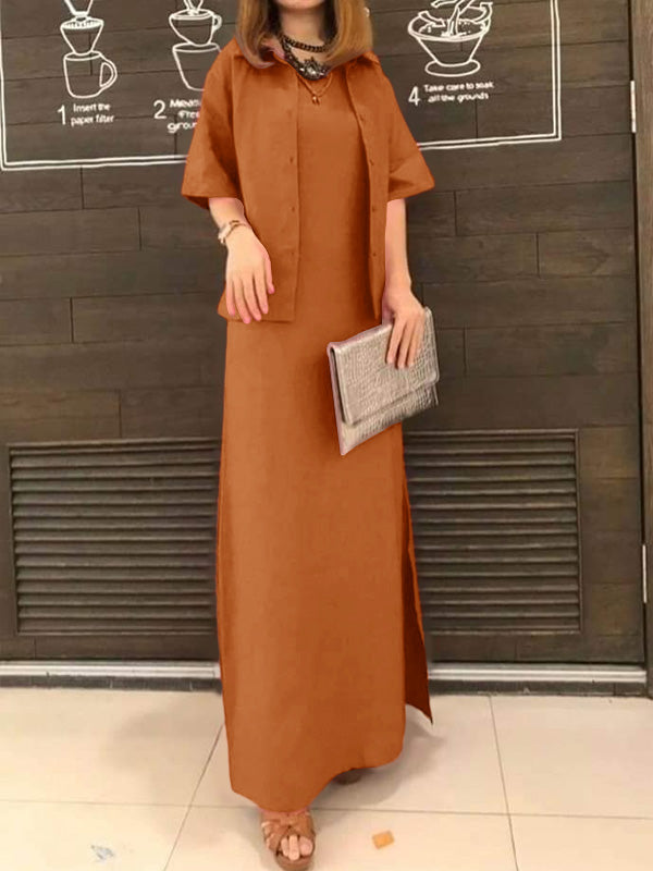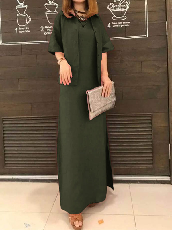 15 Menit LaluButang Front Split Hem Two-Piece Set gaun - beli satu gratis satu(2 PCS)