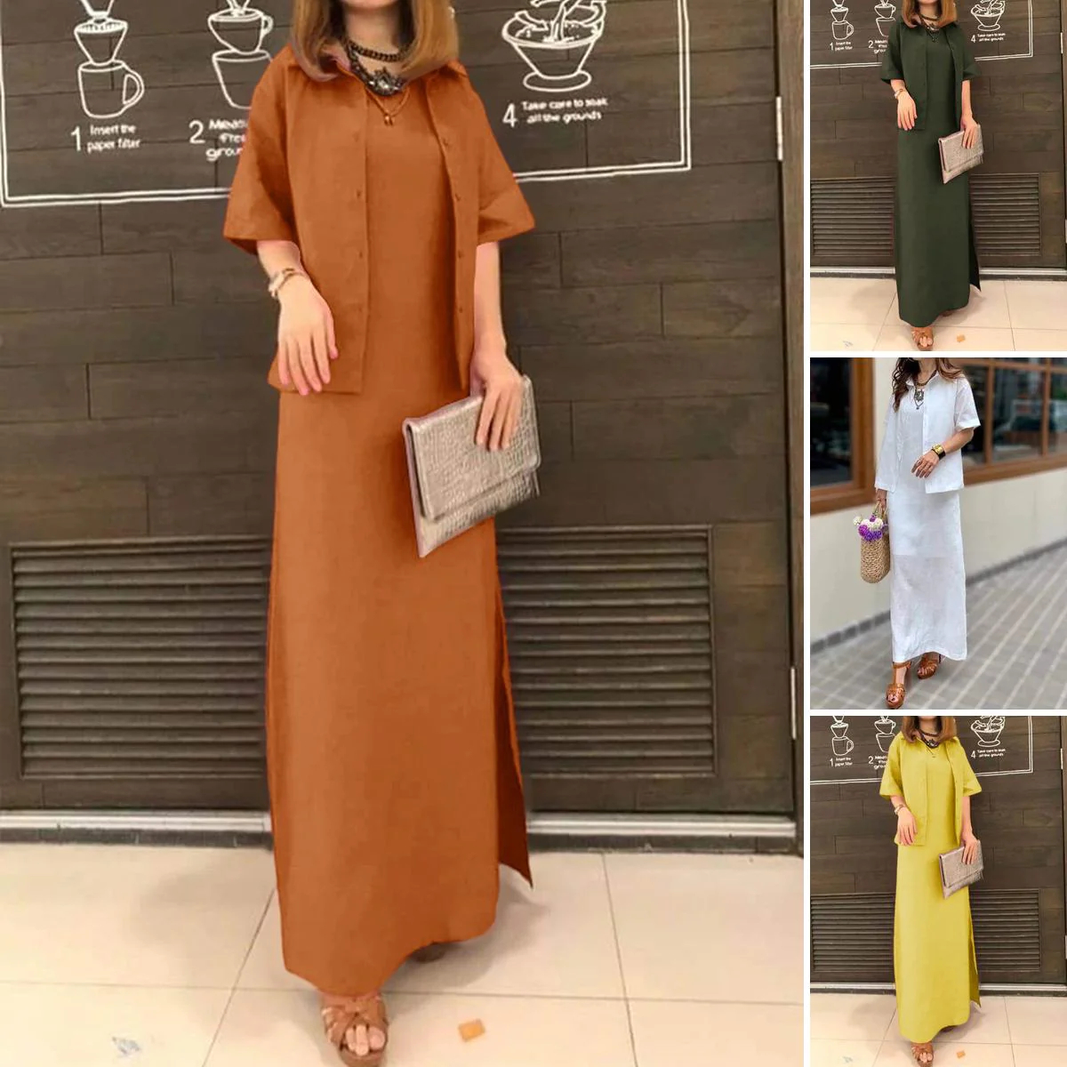 37 Menit LaluButang Front Split Hem Two-Piece Set gaun - beli satu gratis satu(2 PCS)
