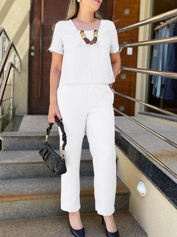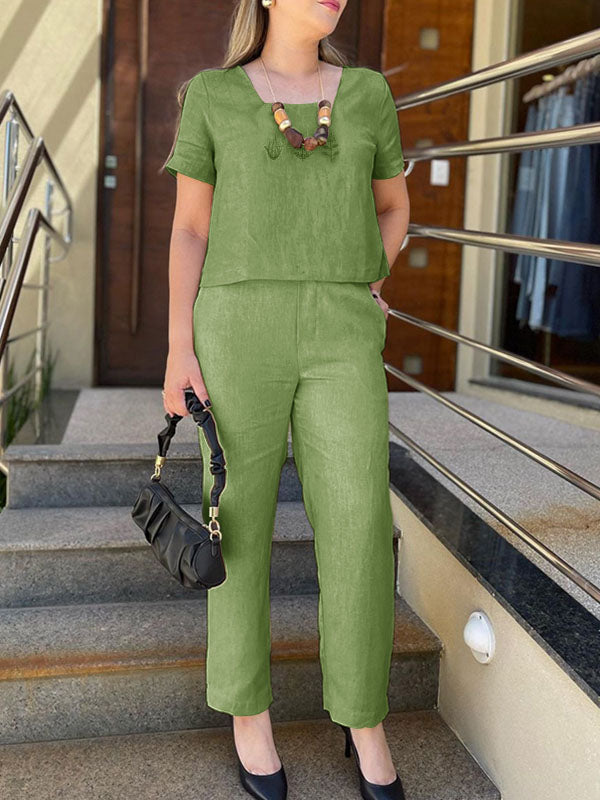 15 Menit LaluSet 2 potong celana lebar kaki katun dan linen warna solid gaya Jepang yang elegan - beli satu gratis satu