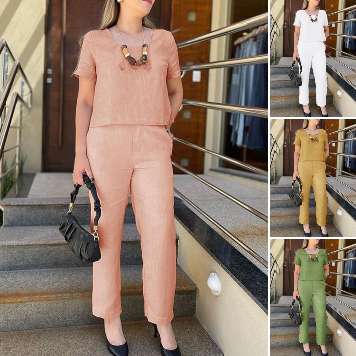 57 Menit LaluSet 2 potong celana lebar kaki katun dan linen warna solid gaya Jepang yang elegan - beli satu gratis satu