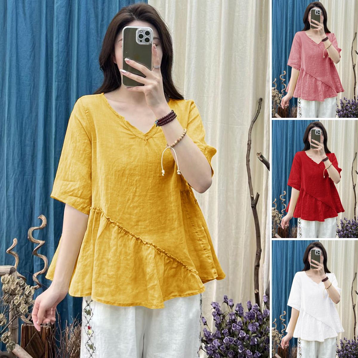2 Menit LaluAtasan katun dan linen Jepang warna solid, desain manset indah, baru 2023 [beli satu gratis satu] - beli satu gratis satu
