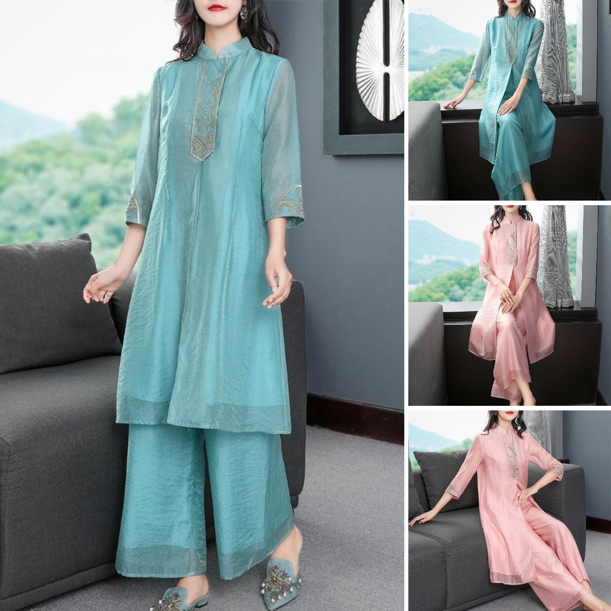 34 Menit LaluSetelan linen katun celana lebar kaki yang elegan [beli satu gratis satu] - beli satu gratis satu