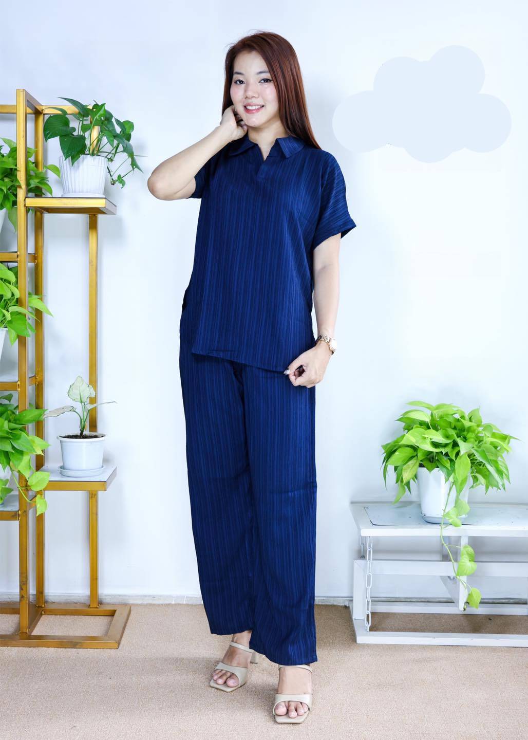 【diskon waktu terbatas】Pakaian baju lengan panjang, celana pinggang elastik kaki lurus, kain kualitas tinggi
