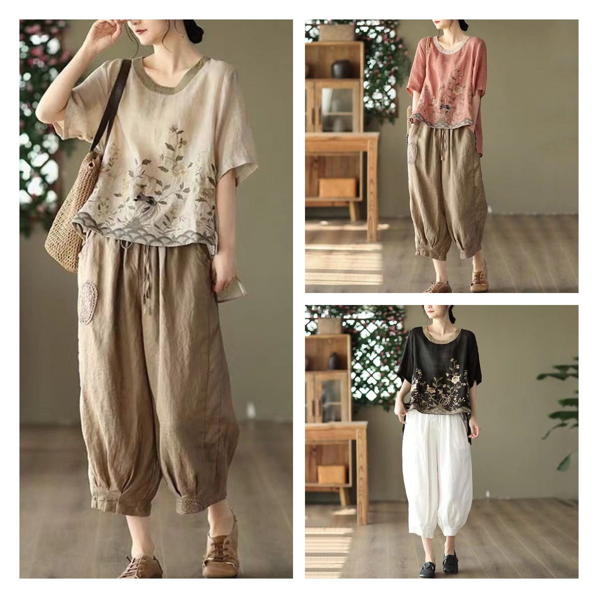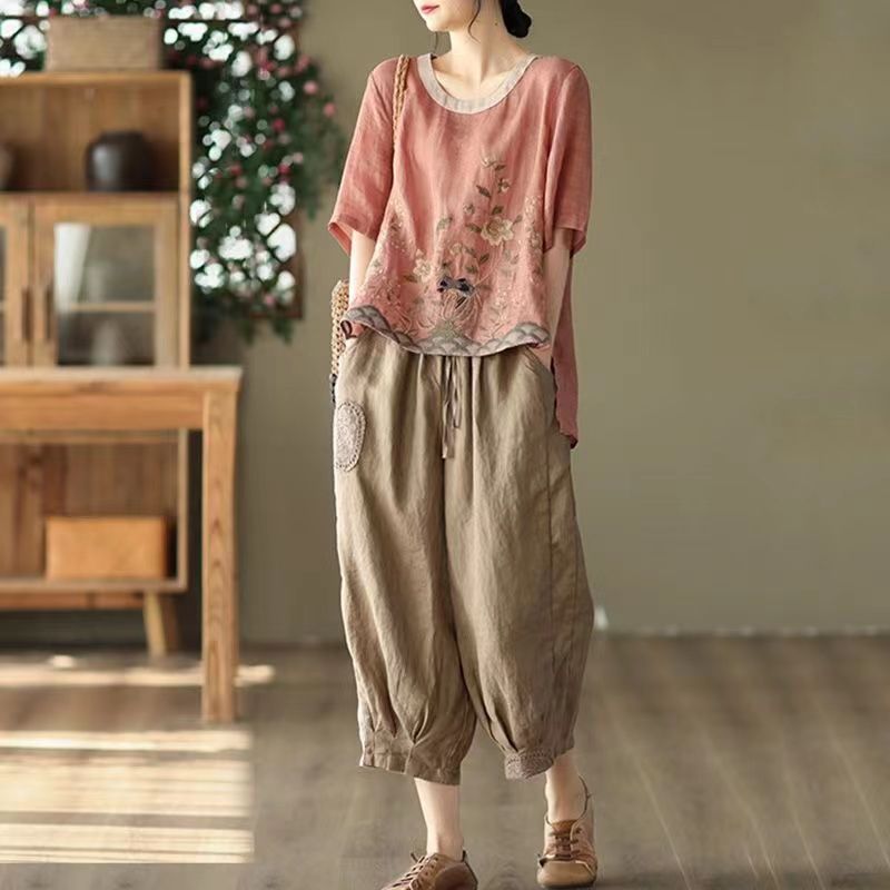 27 Menit LaluT-shirt katun dan linen dua potong dan celana harem - beli satu gratis satu