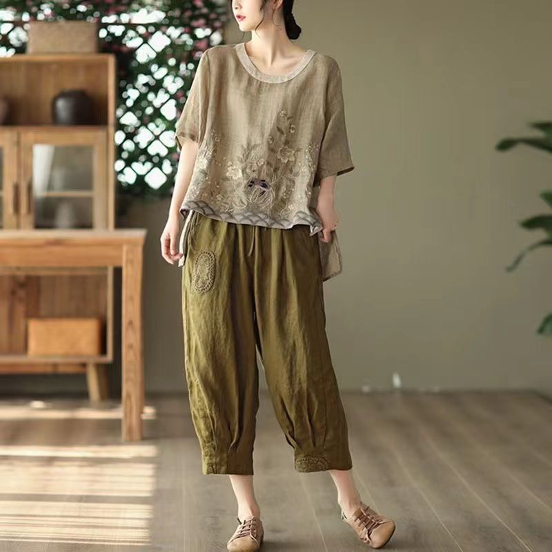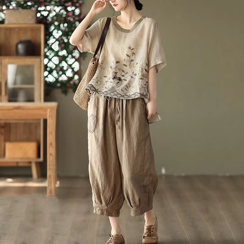 55 Menit LaluT-shirt katun dan linen dua potong dan celana harem - beli satu gratis satu