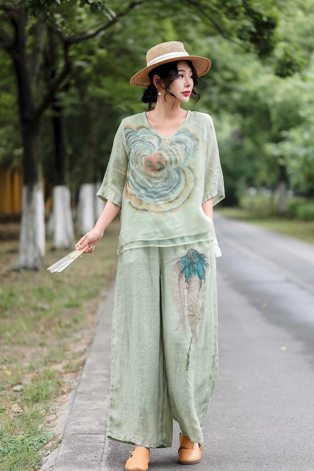 32 Menit LaluSet Celana Potongan Longgar Cetak Pinggang Tinggi - beli satu gratis satu