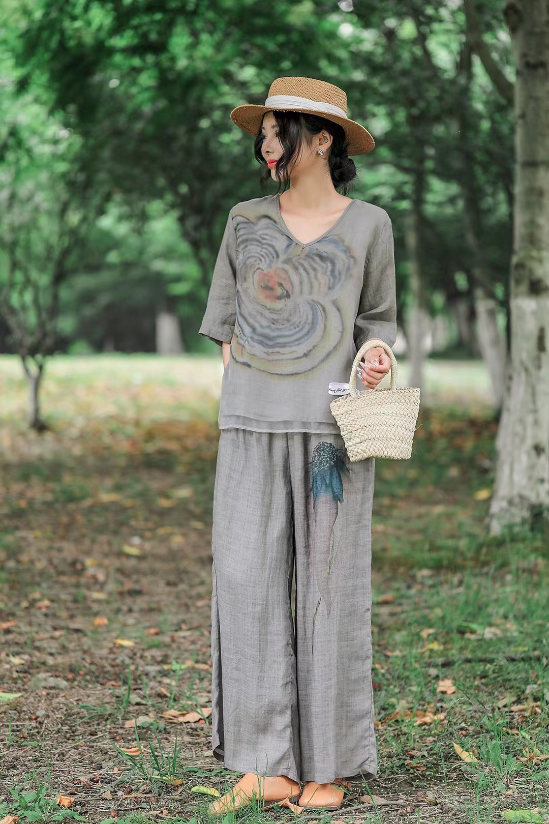 55 Menit LaluSet Celana Potongan Longgar Cetak Pinggang Tinggi - beli satu gratis satu