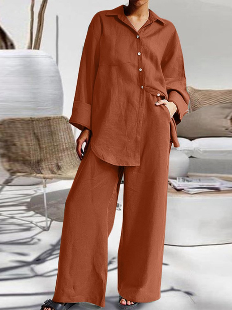 2 Menit LaluSet 2 potong celana lebar kaki katun dan linen warna solid gaya Jepang yang elegan - beli satu gratis satu