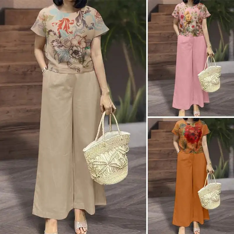 57 Menit Lalu【beli satu gratis satu】Wanita berpakaian dan celana Seting Pakaian Trouser Dua potong Musim panas Kasual - beli satu gratis satu(2 sets)