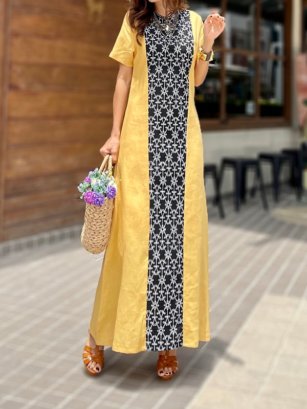 2 Menit LaluDitsy Floral Print Patchwork Round Neck Maxi Dress - beli satu gratis satu(2 PCS)