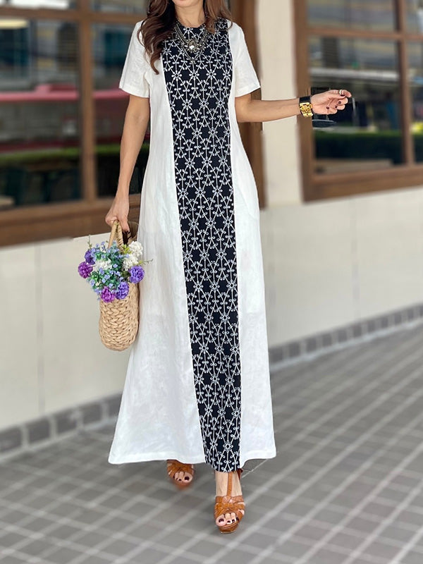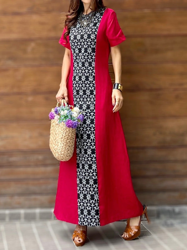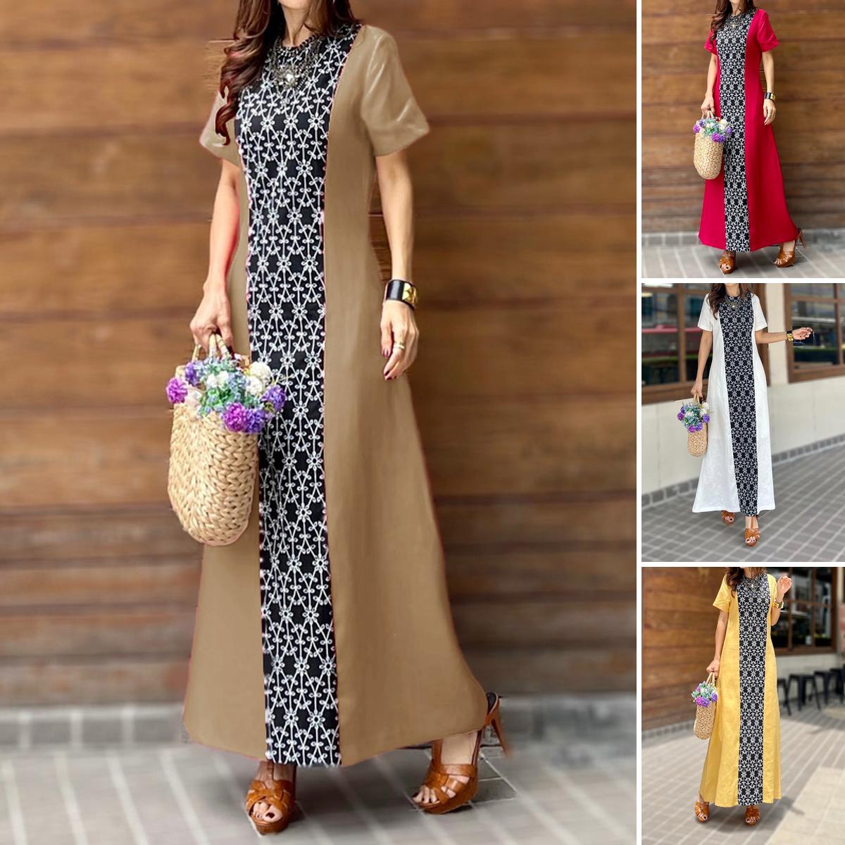 8 Menit LaluDitsy Floral Print Patchwork Round Neck Maxi Dress - beli satu gratis satu(2 PCS)