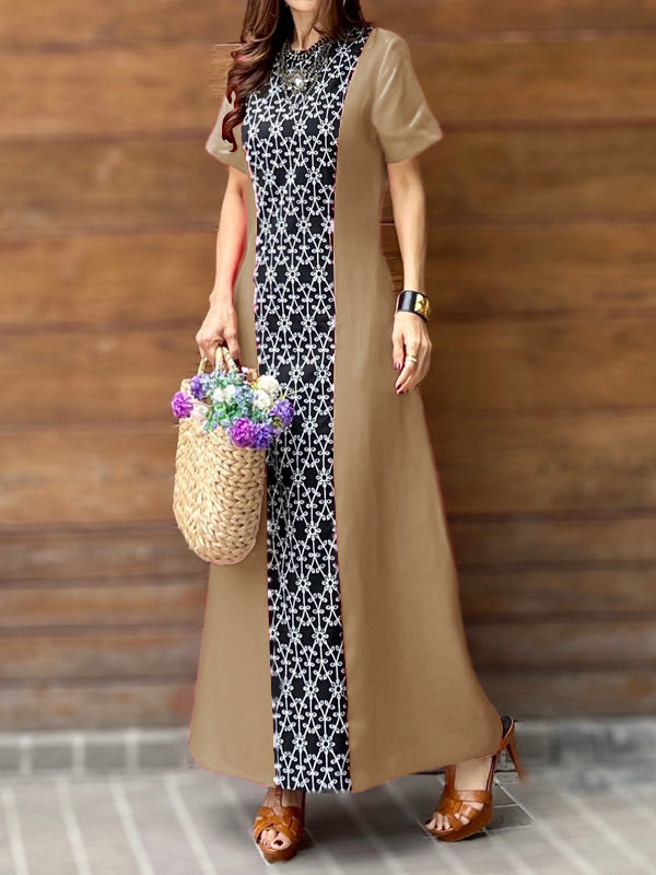 15 Menit LaluDitsy Floral Print Patchwork Round Neck Maxi Dress - beli satu gratis satu(2 PCS)
