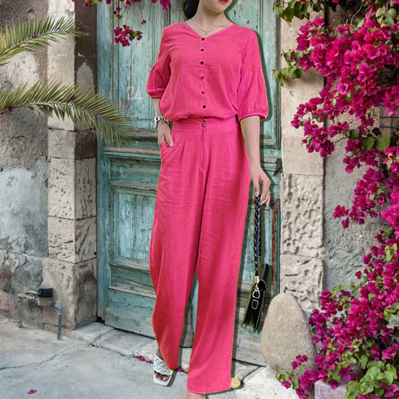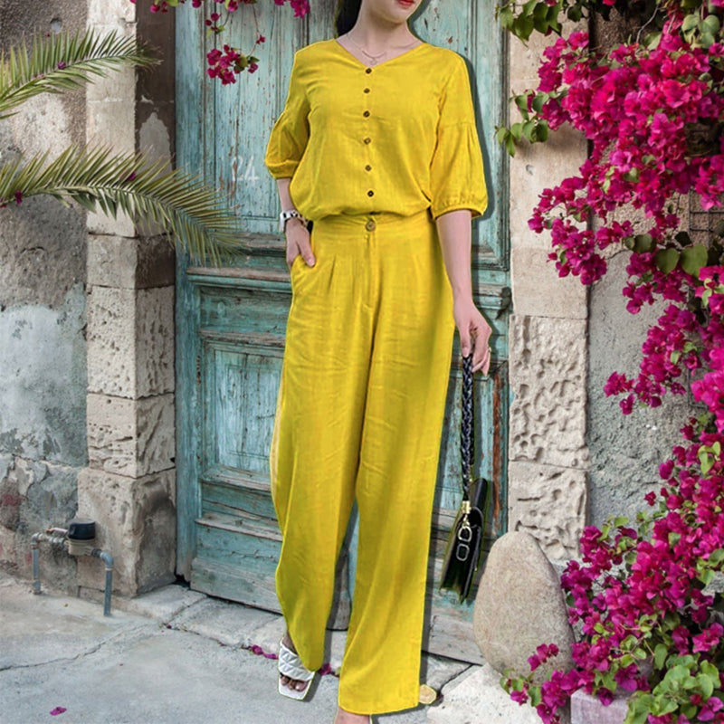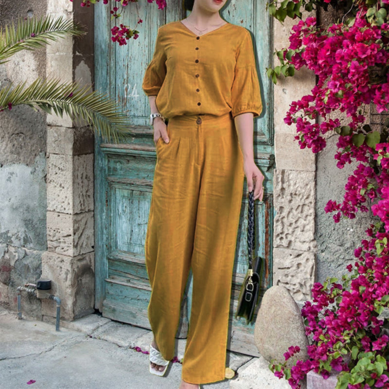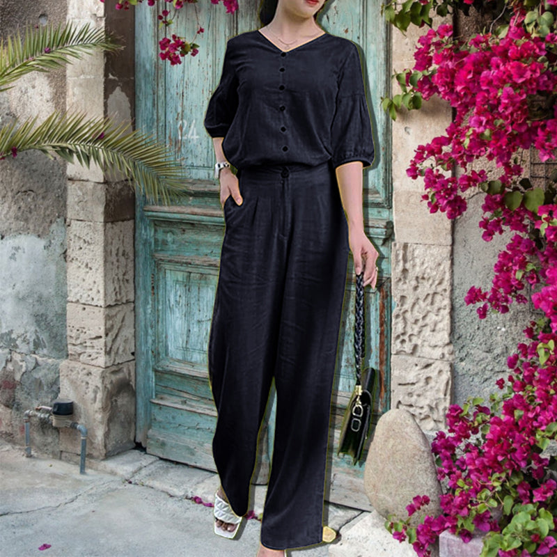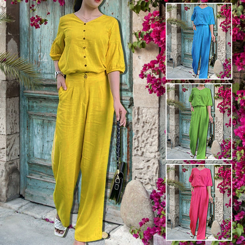 【diskon waktu terbatas】Pakaian baju lengan panjang, celana pinggang elastik kaki lurus, kain kualitas tinggi