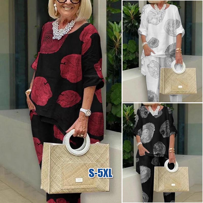 8 Menit Lalu50% off limited time,Wanita Tracksuit Cetak Floral 2pcs Pants Musim panas Seting Kasual 3/4 Blouse Urban Suits Loose Matching Sets Outifits - beli satu gratis satu(2 sets)