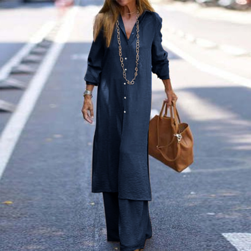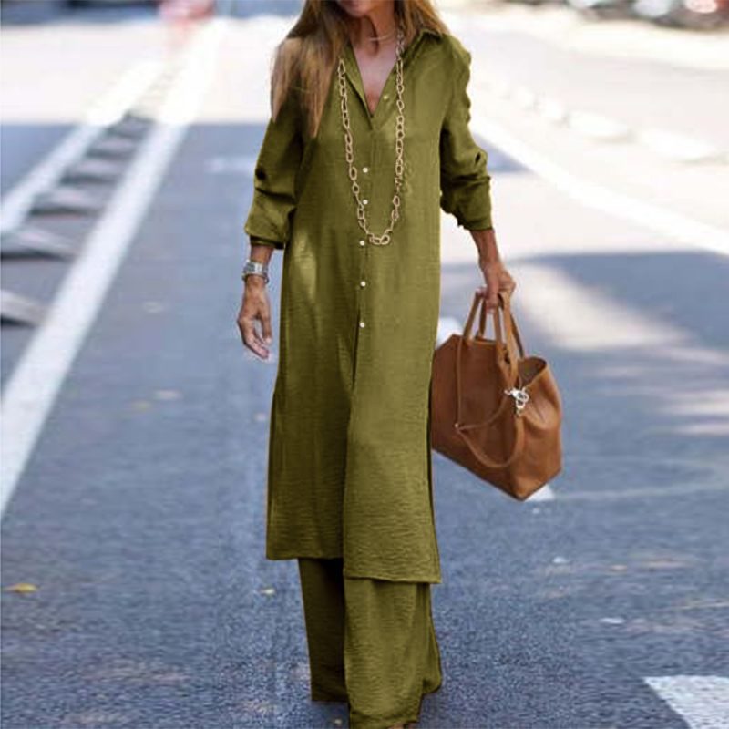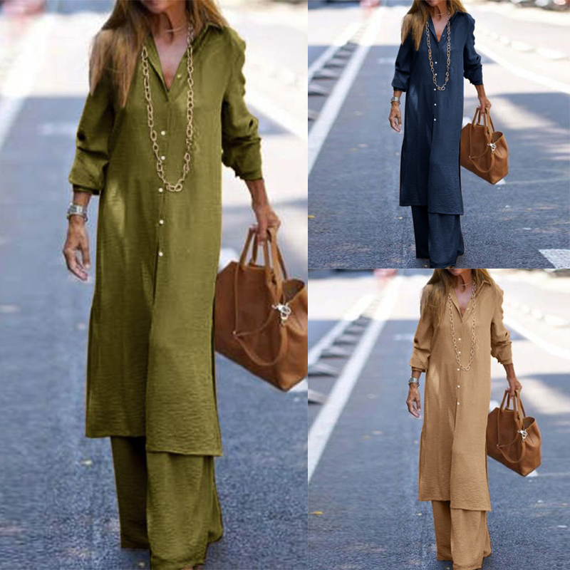 【diskon waktu terbatas】Pakaian baju lengan panjang, celana pinggang elastik kaki lurus, kain kualitas tinggi