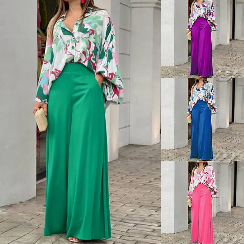 5 Menit LaluSetelan katun dan linen alami [beli satu gratis satu], Set dua potong celana lebar atasan kemeja kasual bermotif - beli satu gratis satu