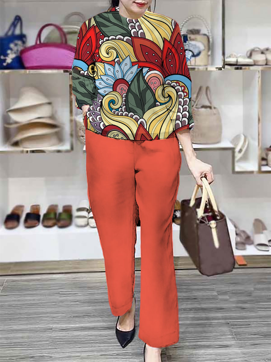 【diskon waktu terbatas】Pakaian baju lengan panjang, celana pinggang elastik kaki lurus, kain kualitas tinggi