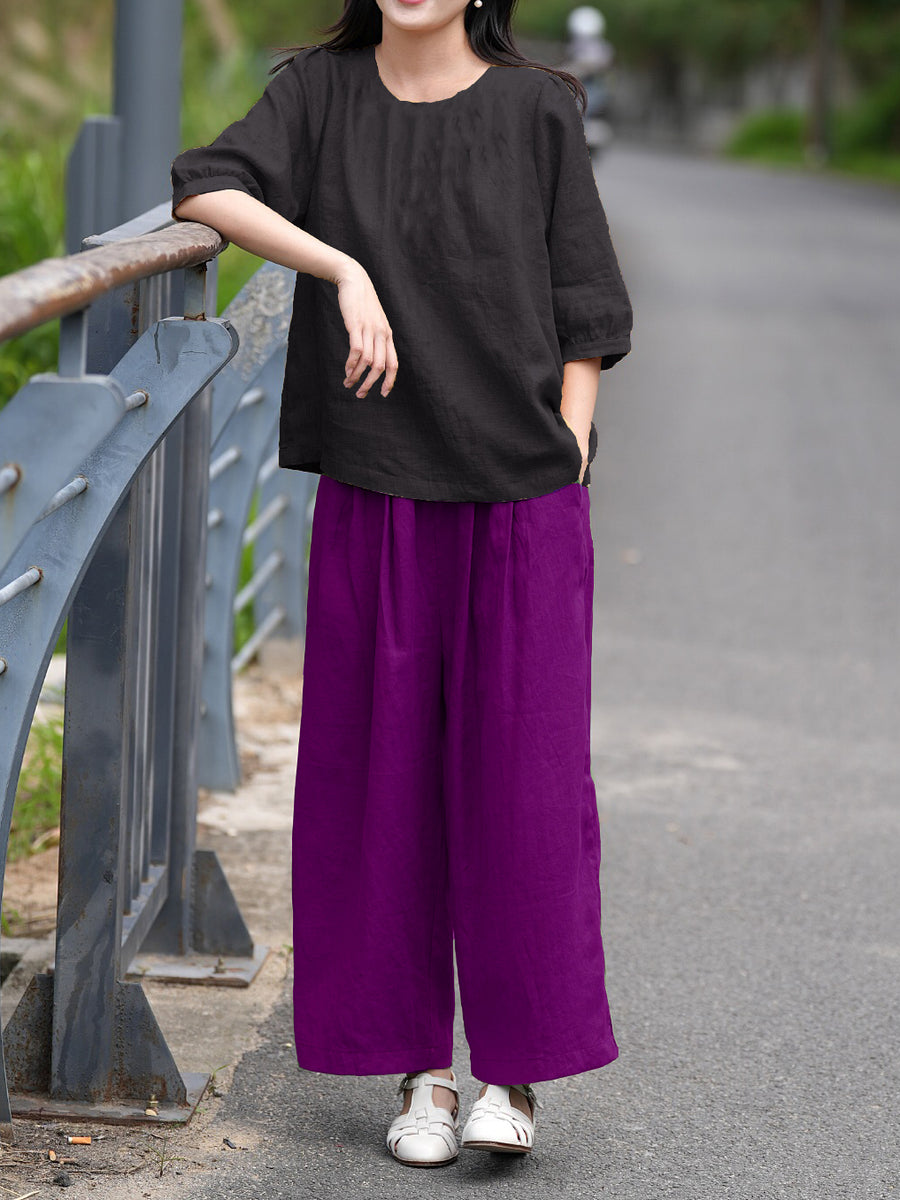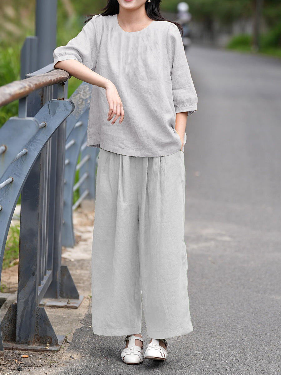 【diskon waktu terbatas】Pakaian baju lengan panjang, celana pinggang elastik kaki lurus, kain kualitas tinggi