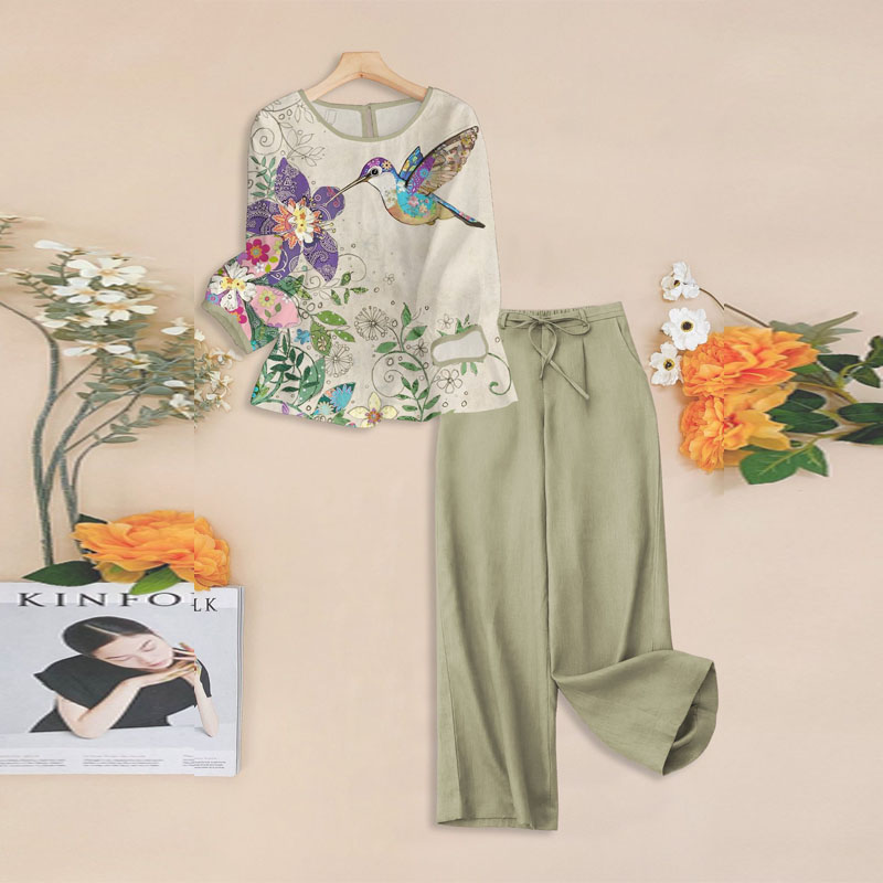 【diskon waktu terbatas】Pakaian baju lengan panjang, celana pinggang elastik kaki lurus, kain kualitas tinggi