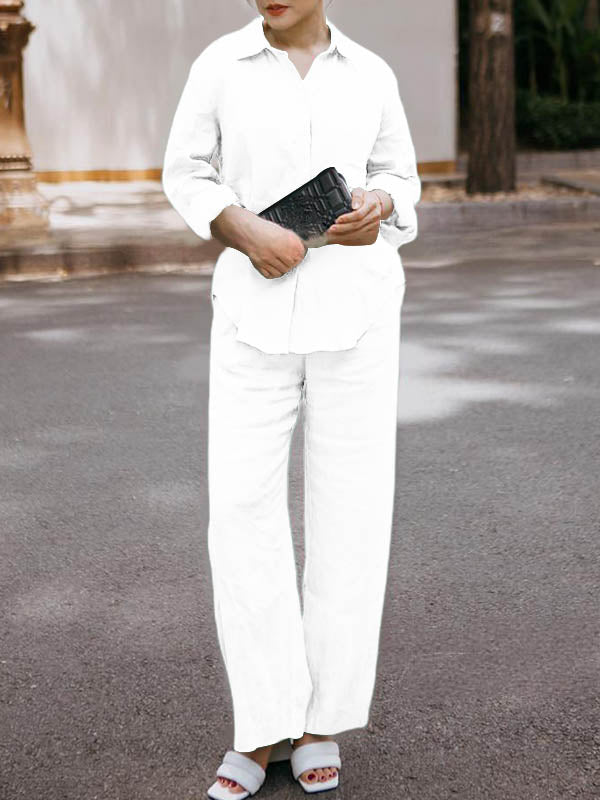 2 Menit LaluSet 2 potong celana lebar kaki katun dan linen warna solid gaya Jepang yang elegan - beli satu gratis satu