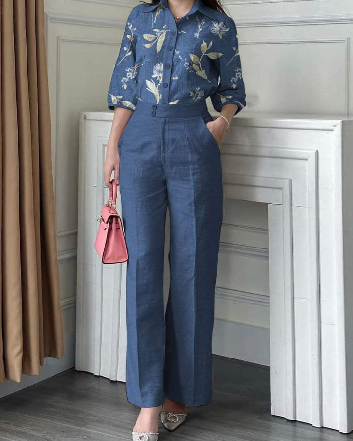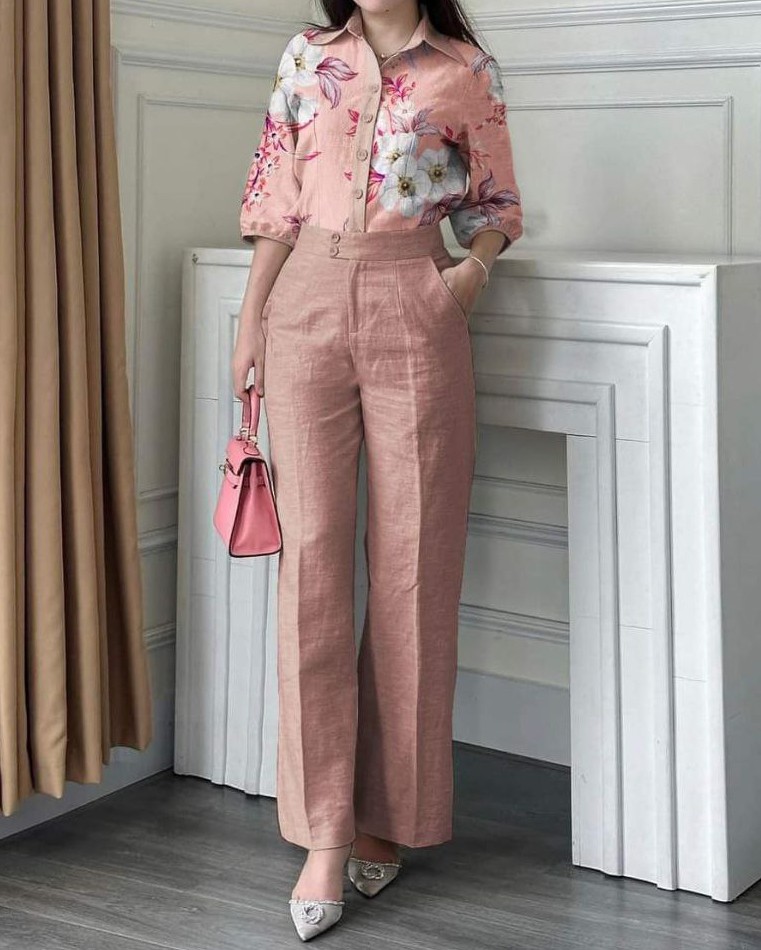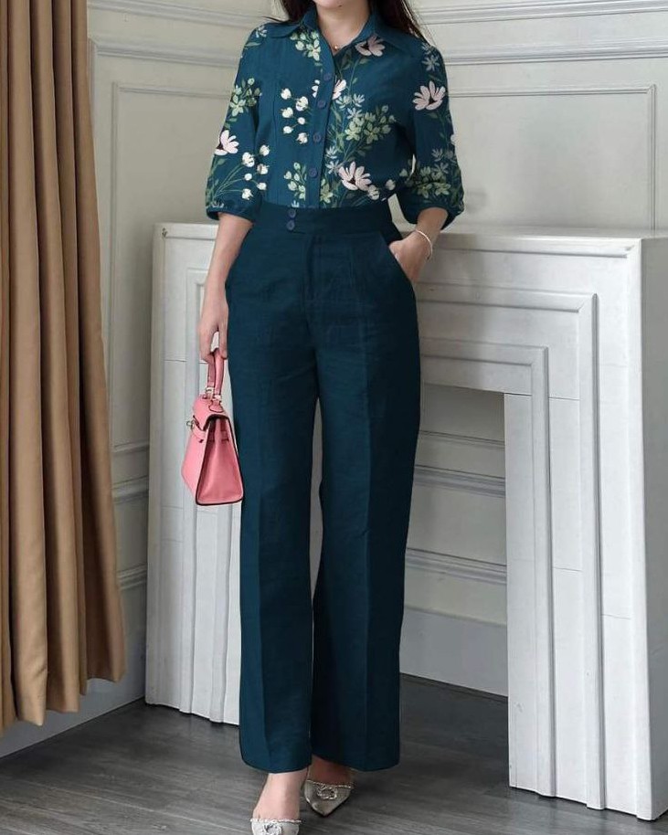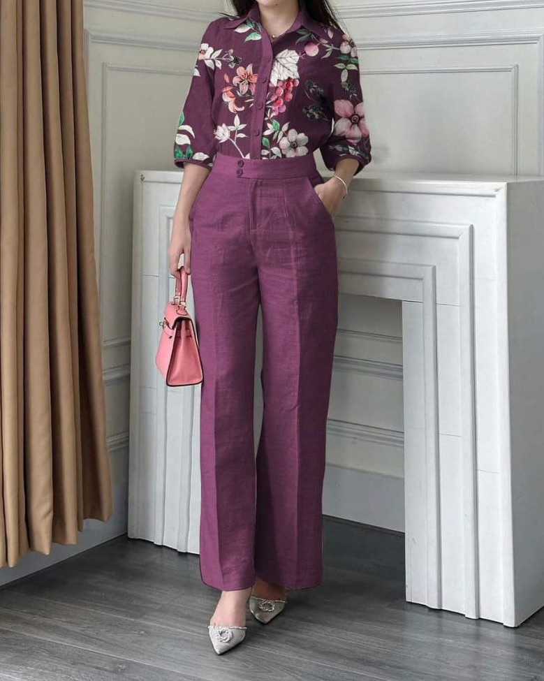 【diskon waktu terbatas】Pakaian baju lengan panjang, celana pinggang elastik kaki lurus, kain kualitas tinggi