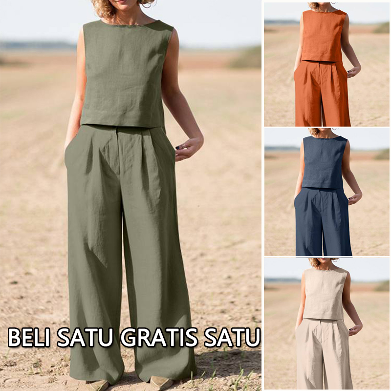 34 Menit LaluKasual Solid O Neck Sleeveless Two Pieces(4 Warna) - beli satu gratis satu(2 sets)