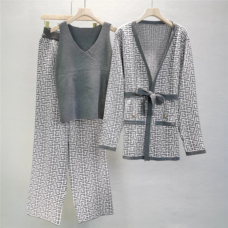 57 Menit LaluKardigan retro kerah V dan celana panjang set tiga potong [beli satu, gratis satu] - beli satu gratis satu
