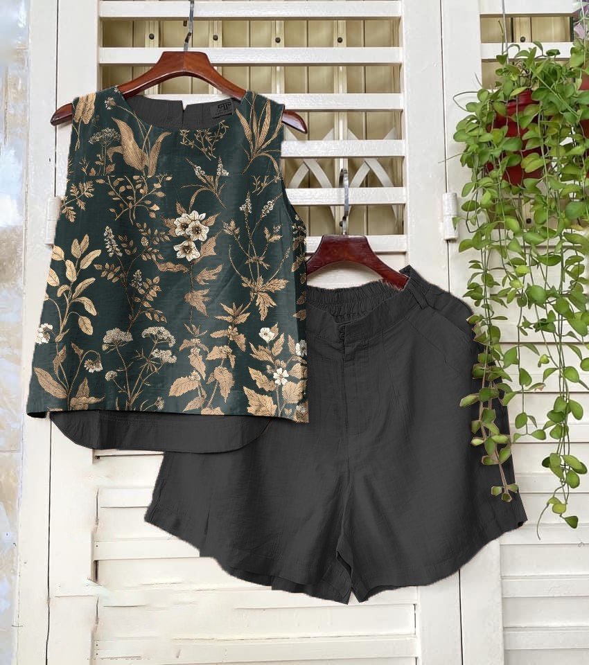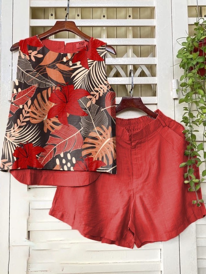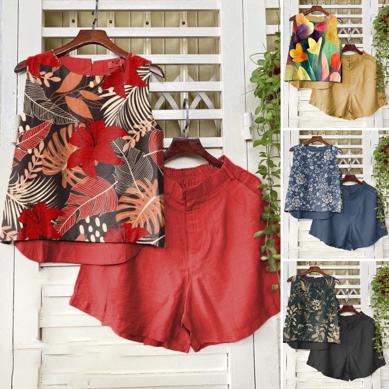 2 Menit LaluSetelan katun dan linen tanpa lengan, celana pinggang elastis lurus, kain berkualitas tinggi - beli satu gratis satu(2 sets)