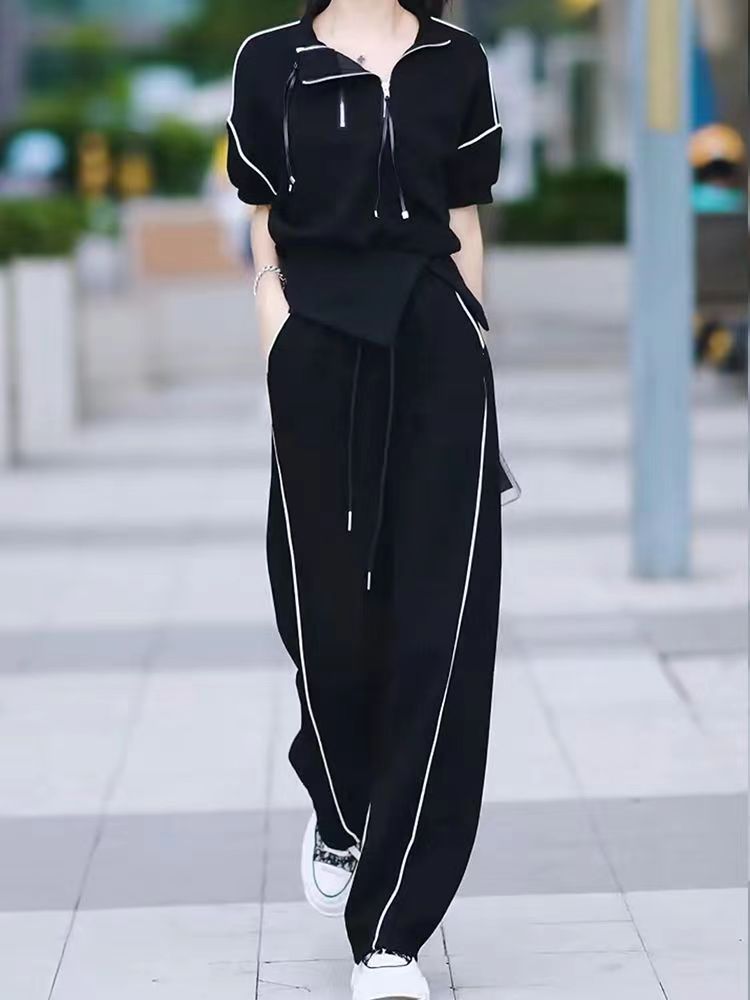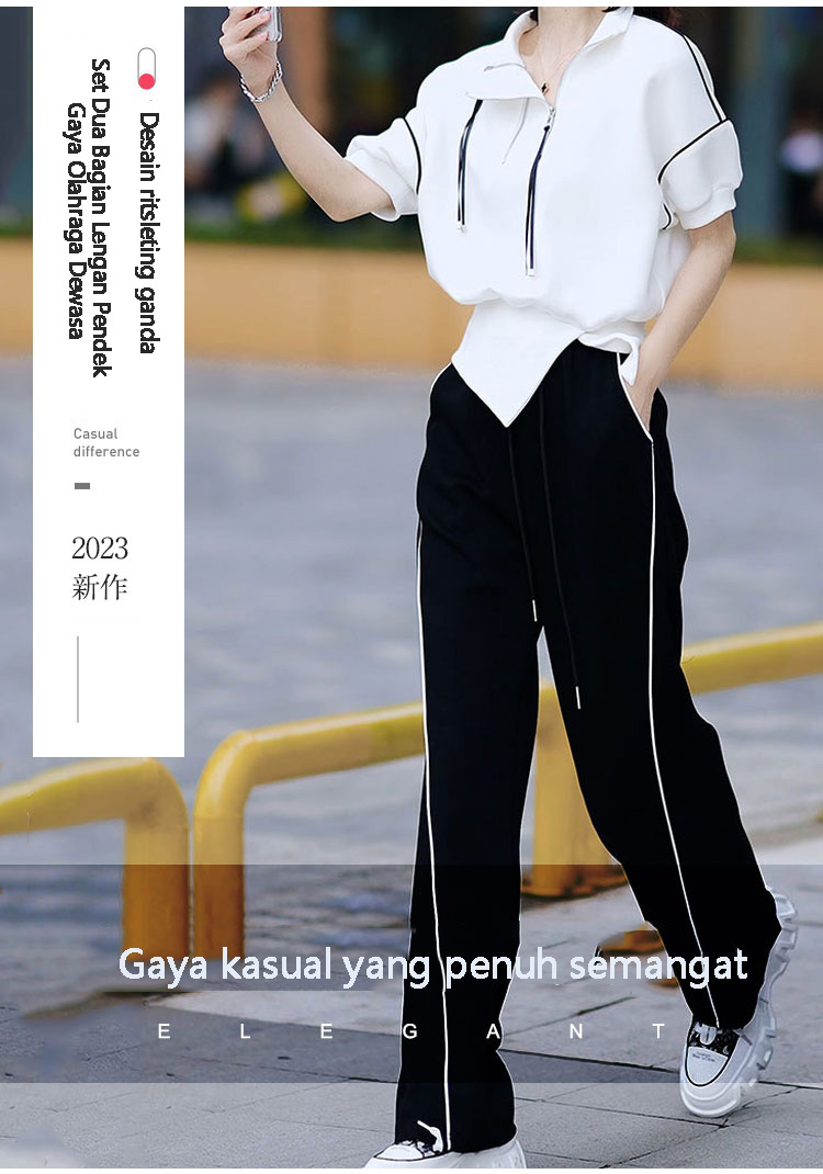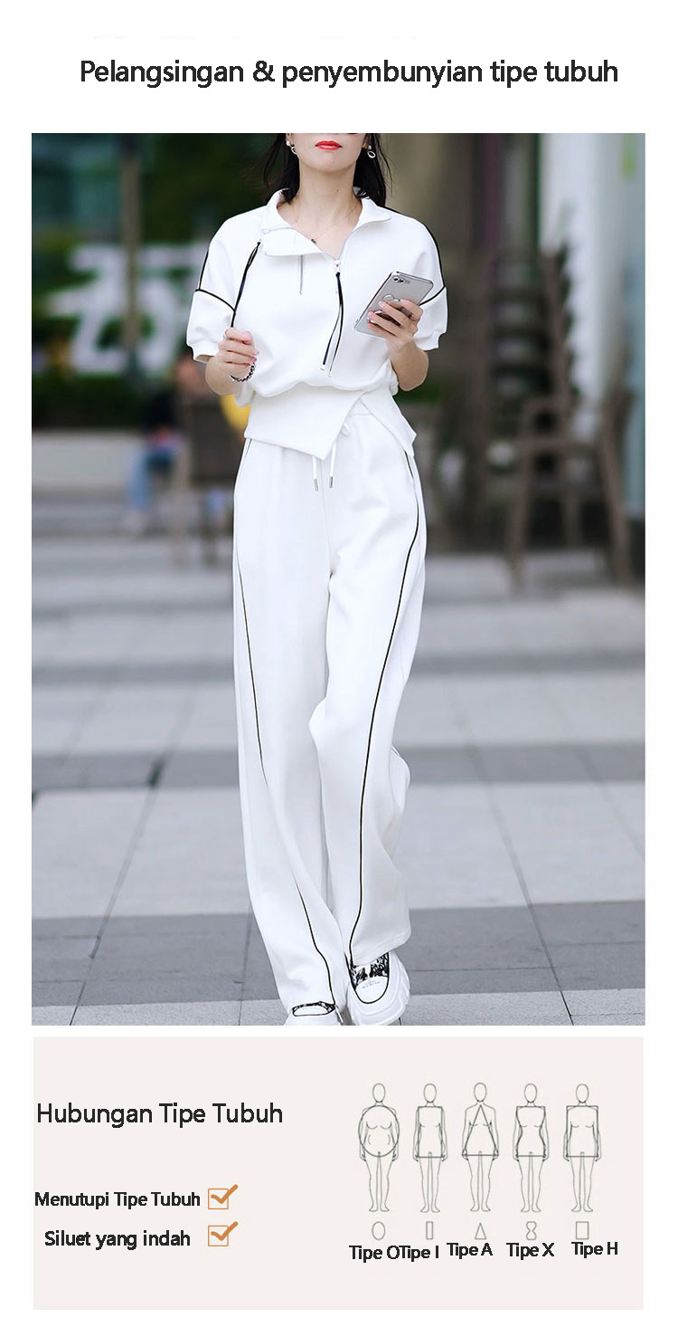 【diskon waktu terbatas】Pakaian baju lengan panjang, celana pinggang elastik kaki lurus, kain kualitas tinggi