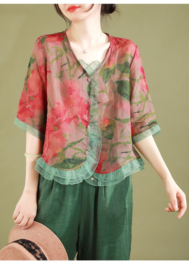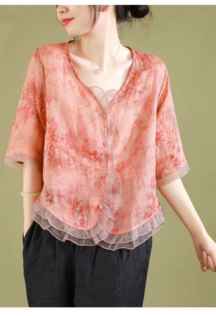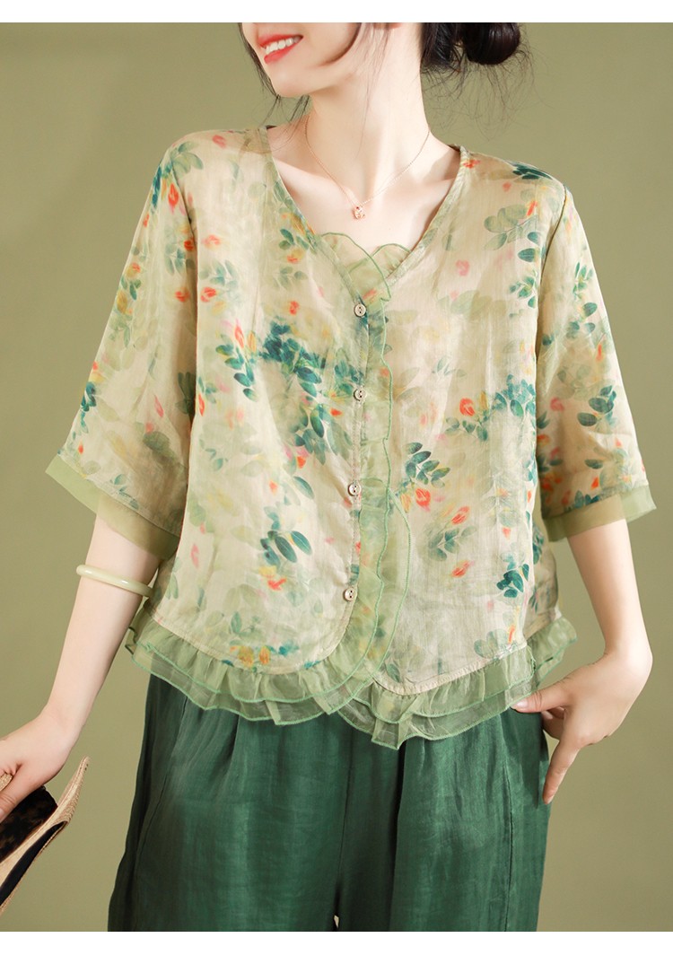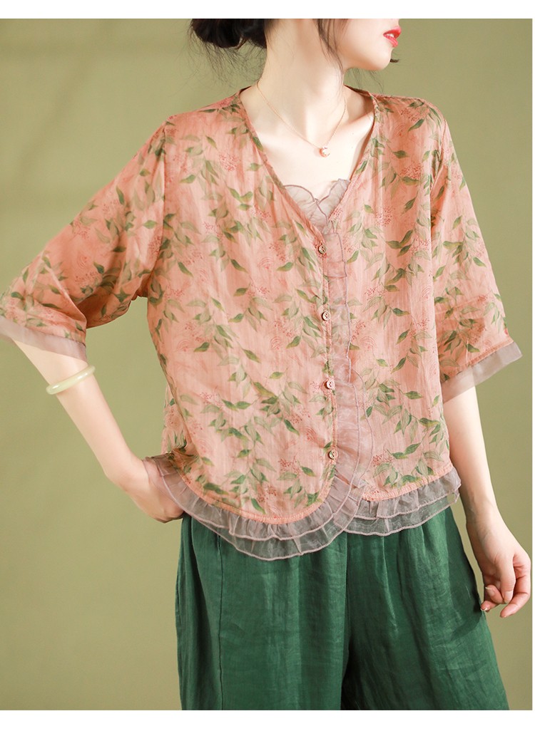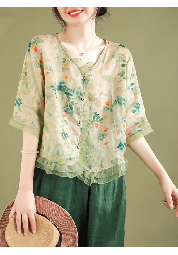 5 Menit Lalu【Black Friday sale】Fashion Butang Baris Blouse Musim panas Atas - beli satu gratis satu(2 PCS)