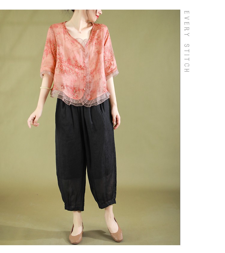 57 Menit Lalu【Black Friday sale】Fashion Butang Baris Blouse Musim panas Atas - beli satu gratis satu(2 PCS)