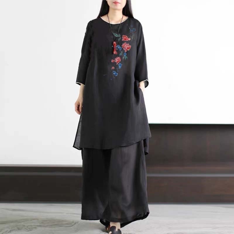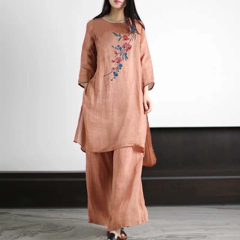57 Menit LaluPakaian baju lengan panjang, celana pinggang elastik kaki lurus, kain kualitas tinggi - beli satu gratis satu(2 sets)