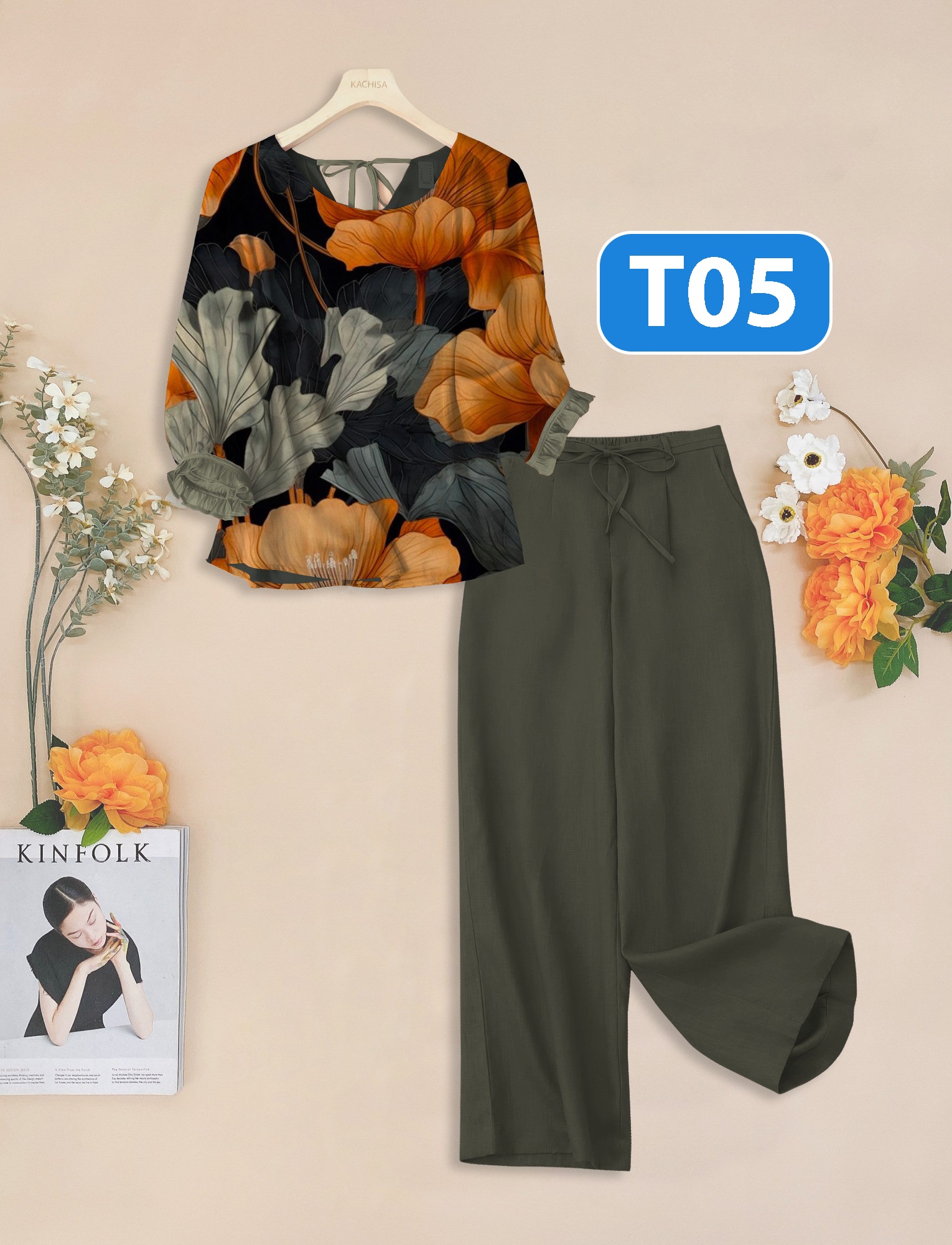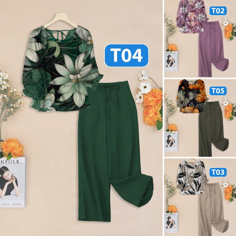 5 Menit Lalu【diskon waktu terbatas】Pakaian baju lengan panjang, celana pinggang elastik kaki lurus, kain kualitas tinggi - membeli satu set
