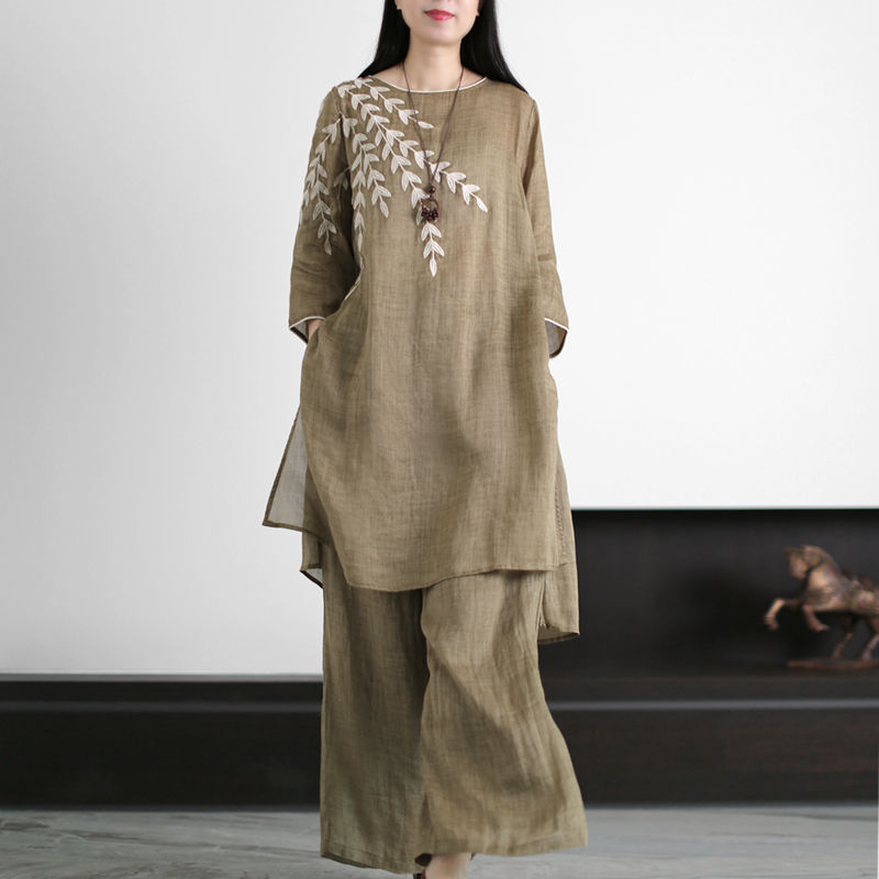 【diskon waktu terbatas】Pakaian baju lengan panjang, celana pinggang elastik kaki lurus, kain kualitas tinggi