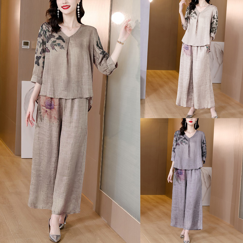 【diskon waktu terbatas】Pakaian baju lengan panjang, celana pinggang elastik kaki lurus, kain kualitas tinggi