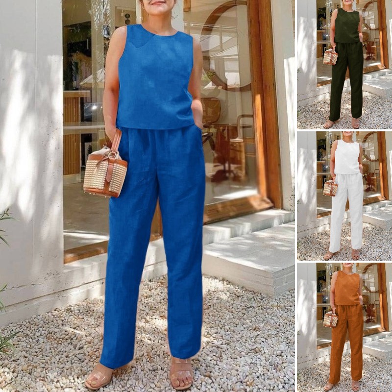 【diskon waktu terbatas】Pakaian baju lengan panjang, celana pinggang elastik kaki lurus, kain kualitas tinggi
